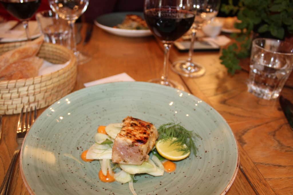 Our table was setup in a private dining area and was decorated with pots of fragrant herbs. Our first course, which ended up being my absolute favourite dish, was the pole caught fresh Tuna paired with the Groot Constantia Shiraz. I am surprised I paused long enough to snap a photo of this course!