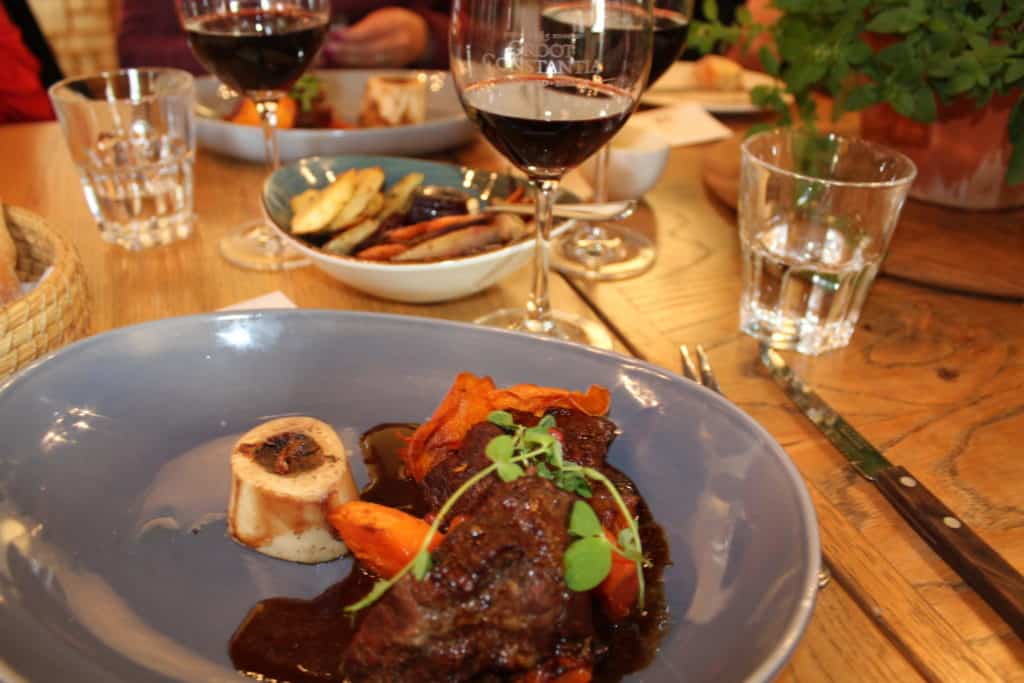 Our Mains were Oudtshoorn Ostrich fillet served medium rare, with bone marrow and the most delicious roasted sweet potato and veg. This course with paired with a beautiful Groot Constantia Gouveneurs Red – officially my favourite wine! Must be those ripe plum notes…