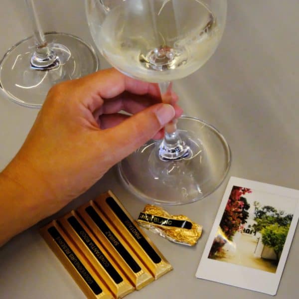 Take another small piece of chocolate and allow it to begin melting in your mouth. Then take a sip of the wine. As you swallow the chocolate and the wine think about how the flavours work together. Are they both equally sweet? Do the flavours of the wine and chocolate meet at the end, or do they stand apart? Is the combination better than the two separate parts?”