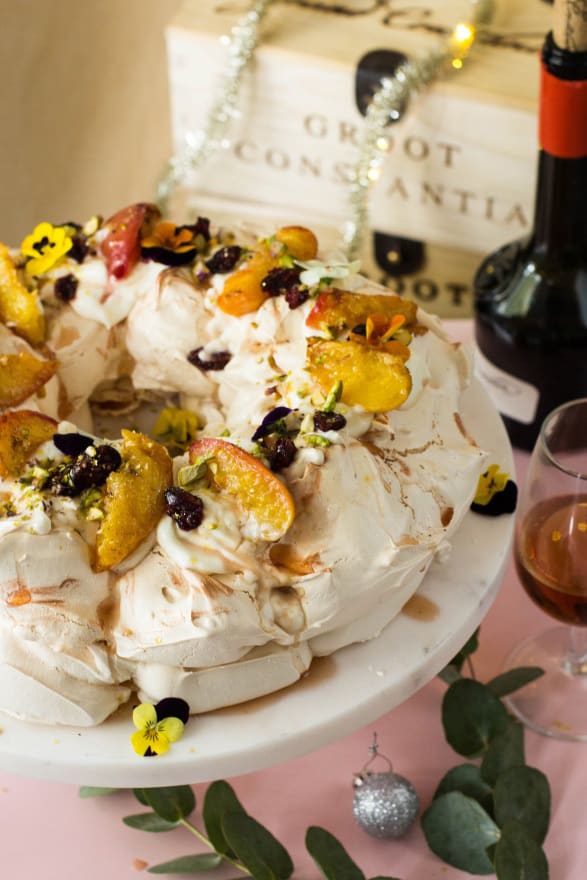 Christmas lunch, whether you choose a traditional roast or a South African braai, can be heavy, which is why I have chosen a fresh and light Summer Pavlova! Decorate your pavlova with loads of fresh cream, fresh and bright strawberries, raspberries and blue berries. But you can choose any seasonal fruit you like! And most importantly, pair your pavlova with the award-winning Grand Constance.